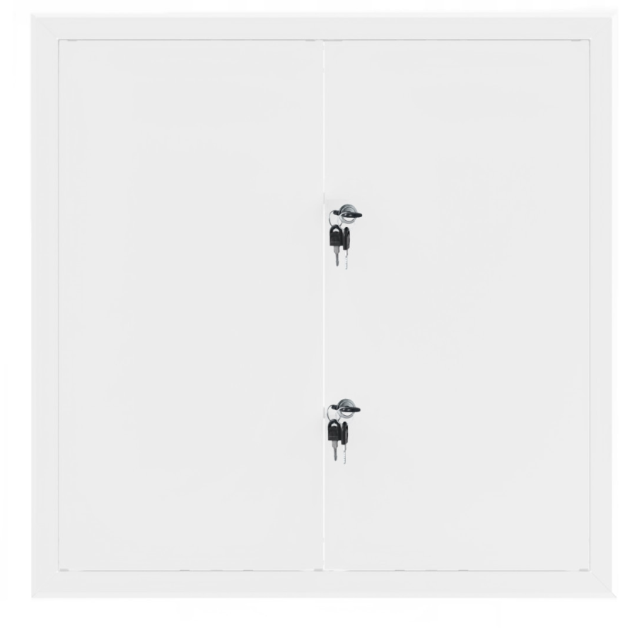 Drzwiczki rewizyjne na podwójnym zamku , zamykane na zamek – idealne do zakrywania otworów rewizyjnych w instalacjach budowlanych.