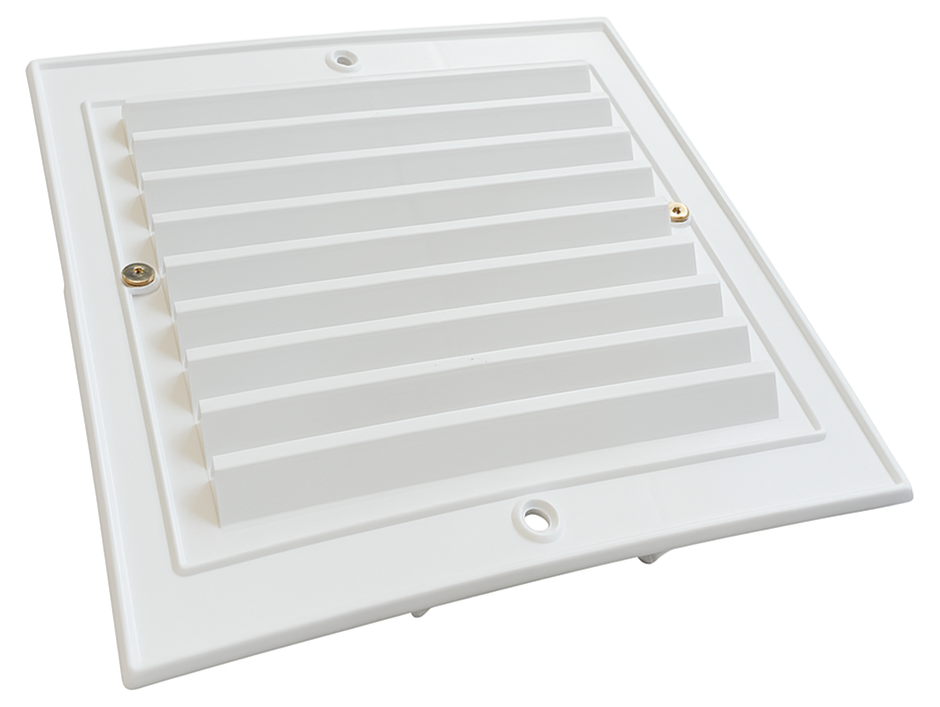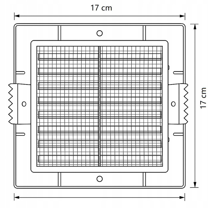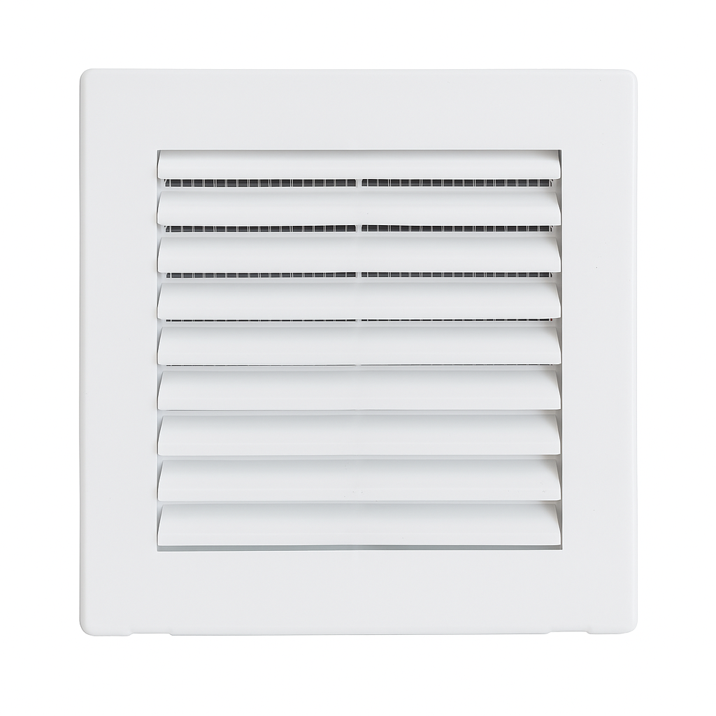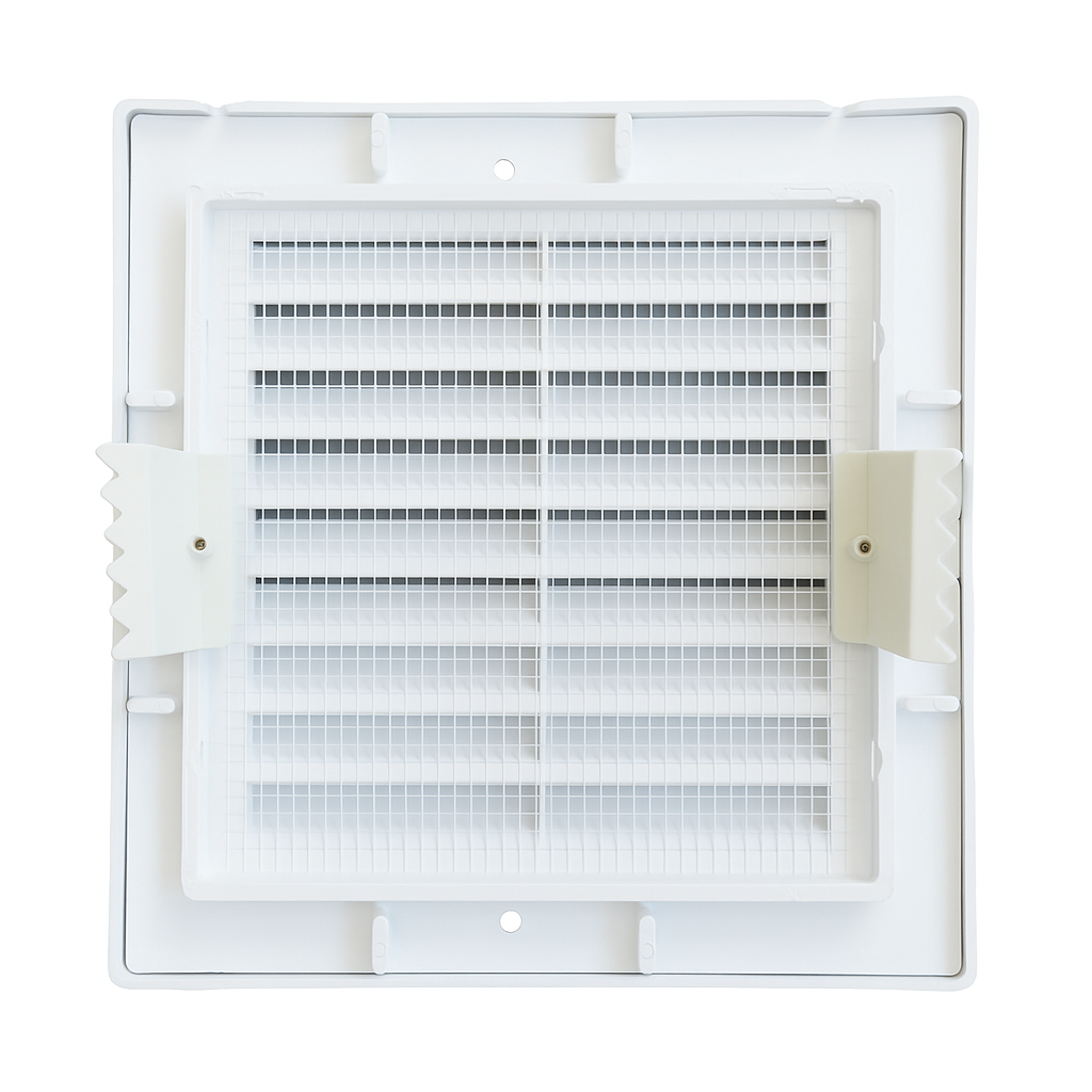 • Kratka wentylacyjna z siatką i łapkami, wykonana z trwałego tworzywa sztucznego.