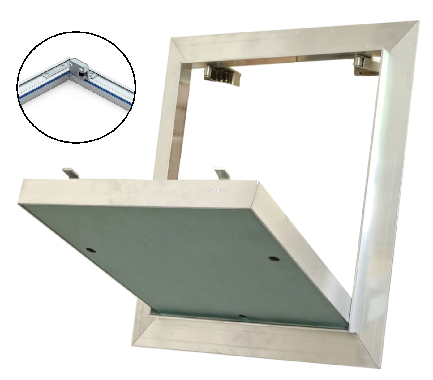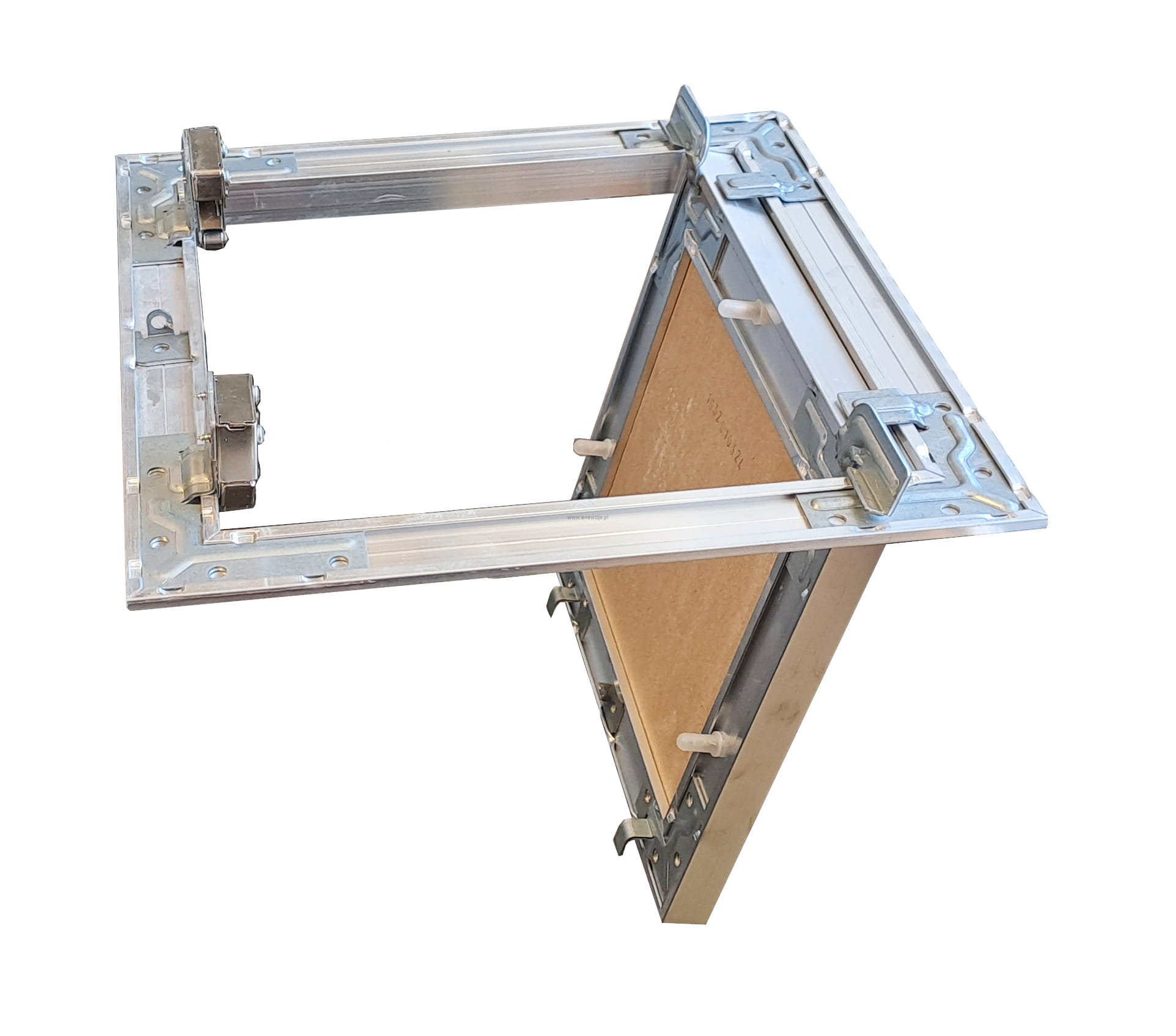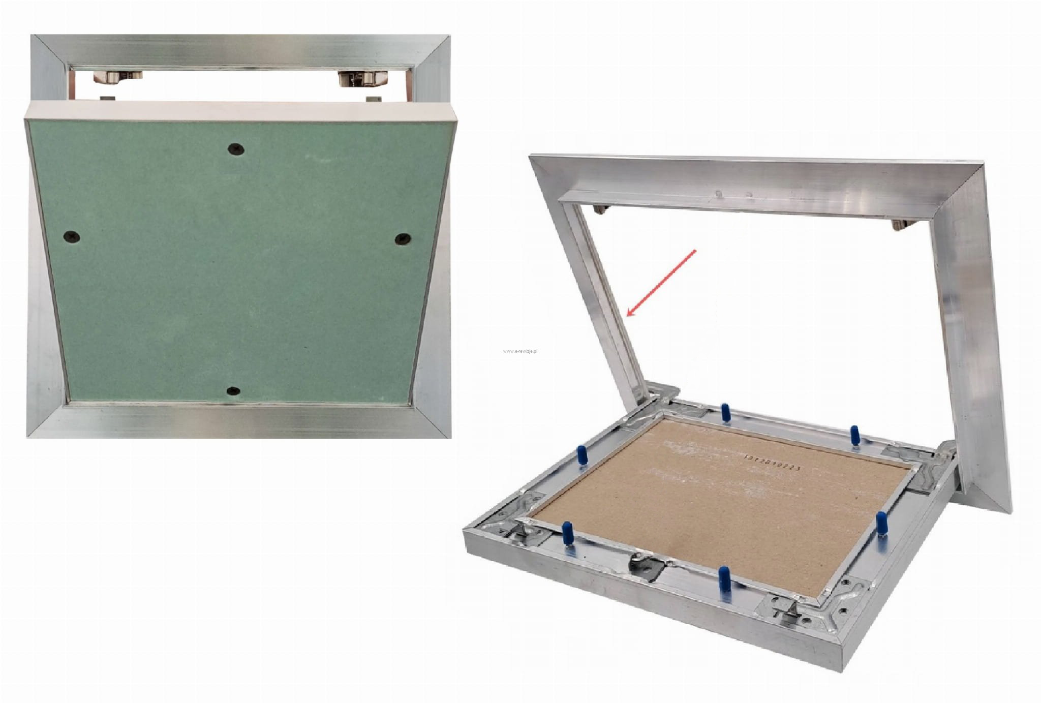 - Możliwość wyjęcia skrzydła drzwi z płytą z ramy drzwiczek – co umożliwia pełny dostęp do otworu rewizyjnego.
