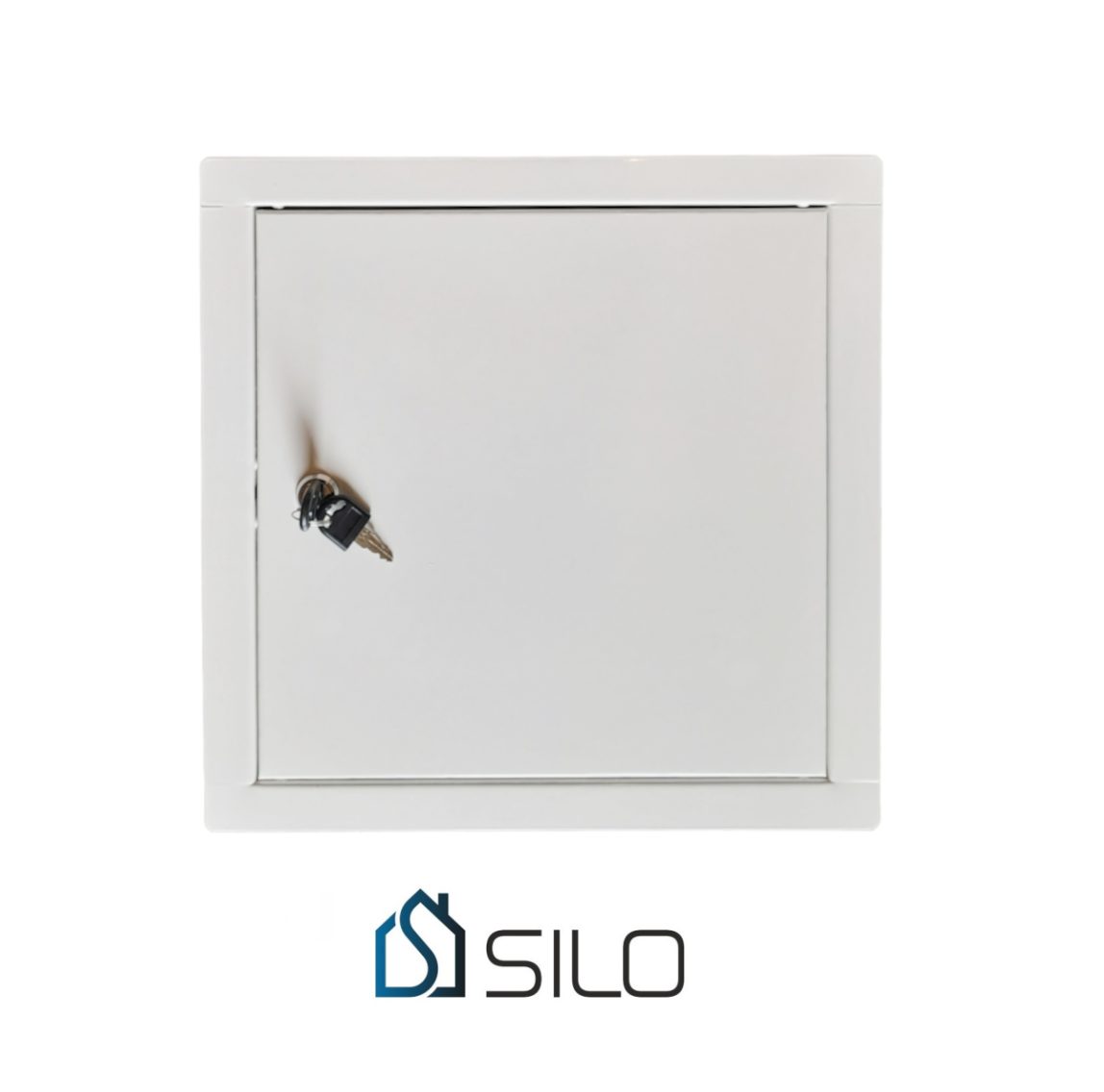 SILO | DRZWICZKI REWIZYJNE METALOWE BIAŁE 150×200 MM- ZAMYKANE NA KLUCZ