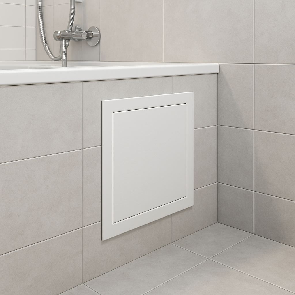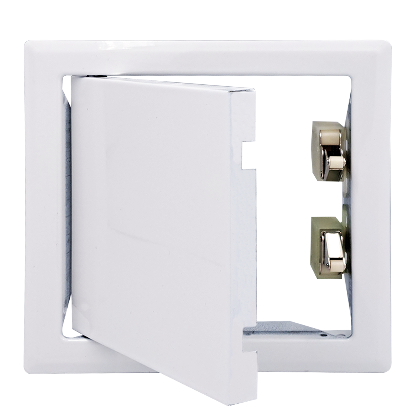 Eleganckie, metalowe drzwiczki rewizyjne malowane proszkowo na kolor biały, dla ochrony przed korozją. Model do montażu w płytach gips-karton oraz w ścianach z cegły.