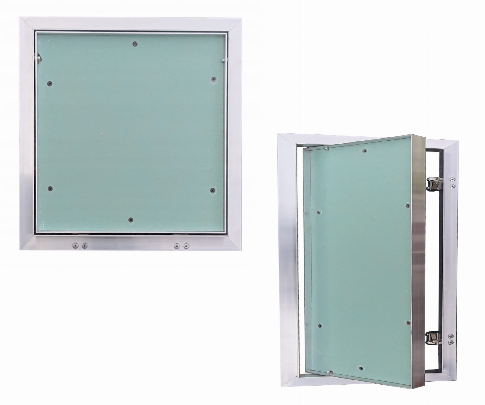 Drzwi rewizyjne CERAMIKO wykonane są z profili aluminiowych, które są spawane do ramy zewnętrznej i wewnętrznej. Cały zespół jest połączony za pomocą stałego zawiasu, co umożliwia otwarcie skrzydła drzwiowego w razie potrzeby. W wersji standardowej model ten produkowany jest z wodoodporną płytą w kolorze zielonym, mocowaną do ramy wewnętrznej za pomocą kleju o dużej wytrzymałości, co gwarantuje szybką i łatwą obróbkę powierzchni.