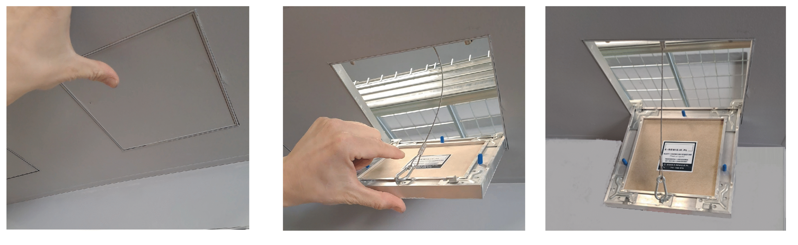 • Drzwiczki są doskonałe do montażu w suficie, choć mogą być również montowane na ścianie.