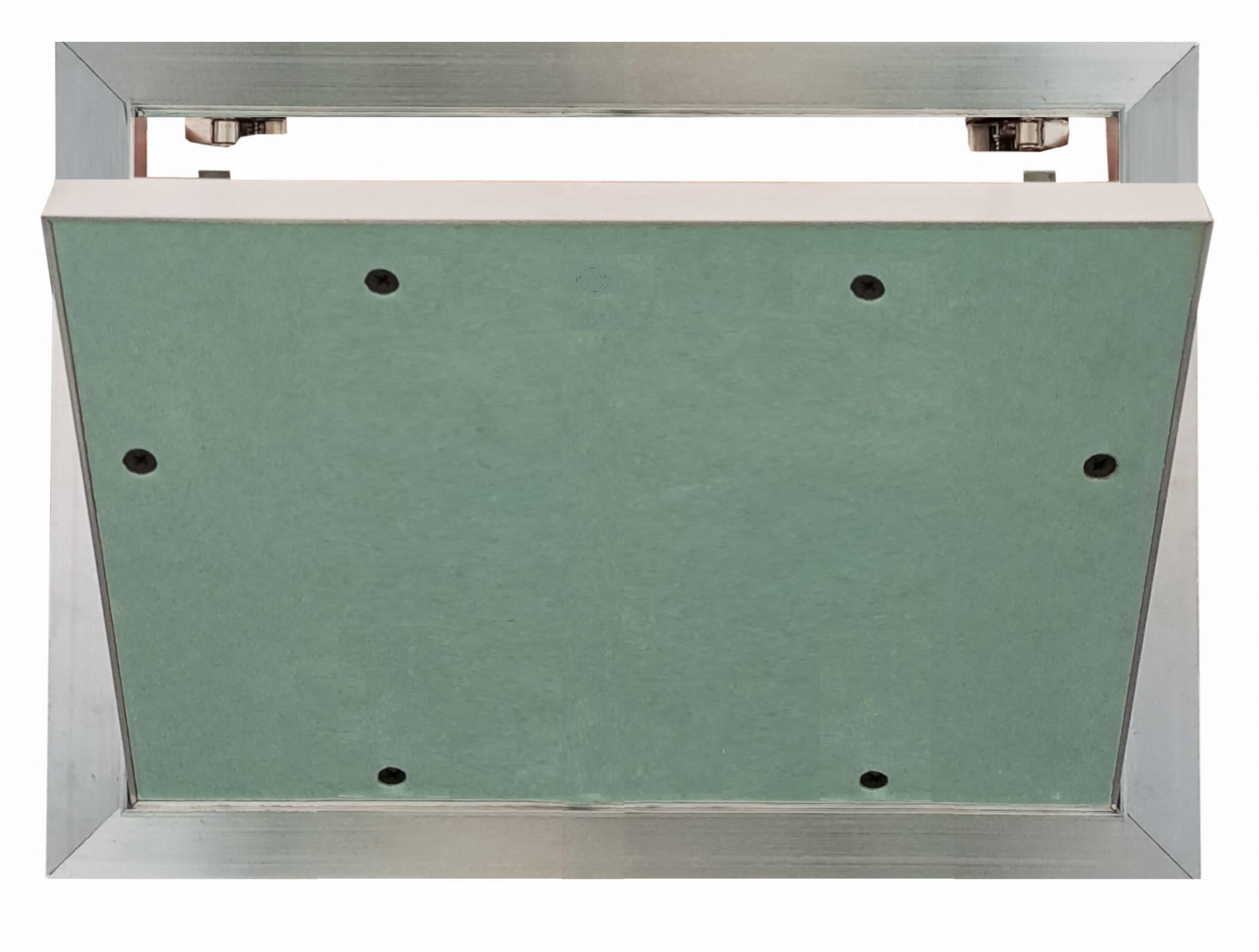Model drzwiczek rewizyjnych REMO jest produkowany z zieloną płytą gips-karton, pokrytą warstwą impregnatu. Dzięki impregnacji płyta jest bardziej wytrzymała i doskonale sprawdza się w pomieszczeniach o podwyższonej wilgotności takich jak: łazienka, czy toaleta. Wspomniana płyta mocowana jest do ramy wewnętrznej za pomocą wkrętów samogwintujących.