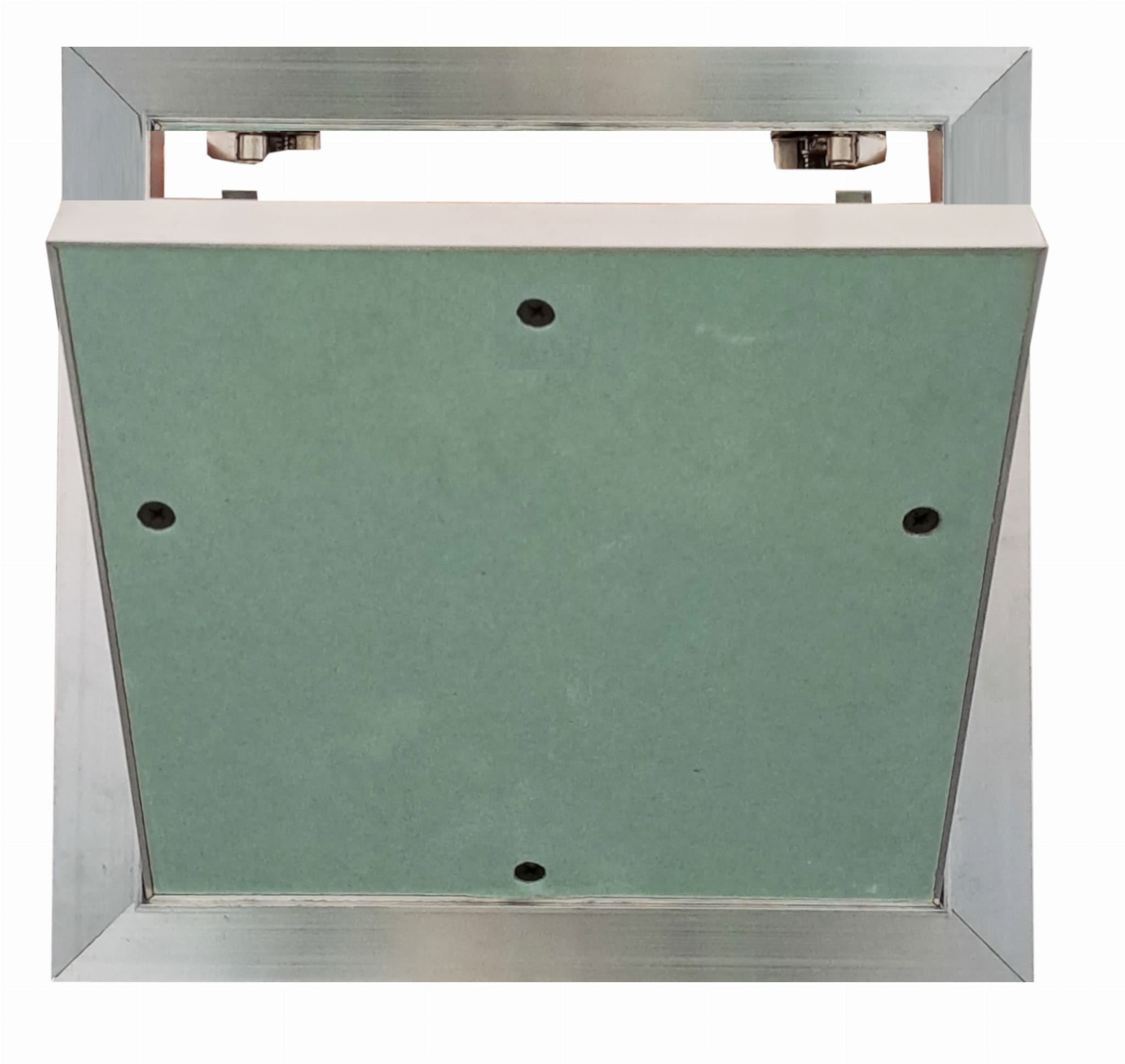 Model drzwiczek rewizyjnych REMO jest produkowany z zieloną płytą gips-karton, pokrytą warstwą impregnatu. Dzięki impregnacji płyta jest bardziej wytrzymała i doskonale sprawdza się w pomieszczeniach o podwyższonej wilgotności takich jak: łazienka, czy toaleta. Wspomniana płyta mocowana jest do ramy wewnętrznej za pomocą wkrętów samogwintujących.