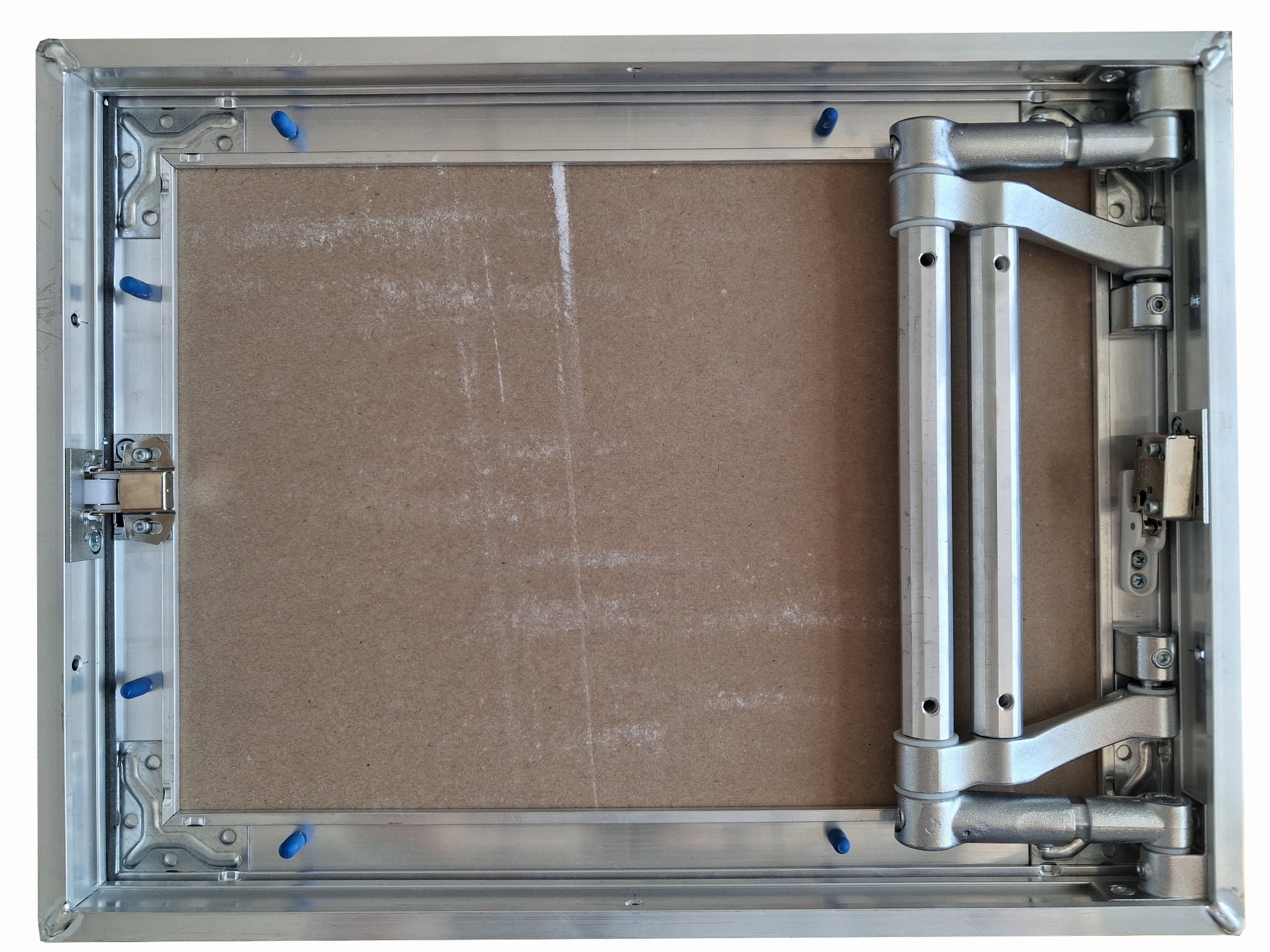 • Skrzydło drzwi trwale przymocowane do ramy za pomocą stałego, wzmacnianego zawiasu dociskowego, dzięki czemu konstrukcja jest bardzo solidna i stabilna.