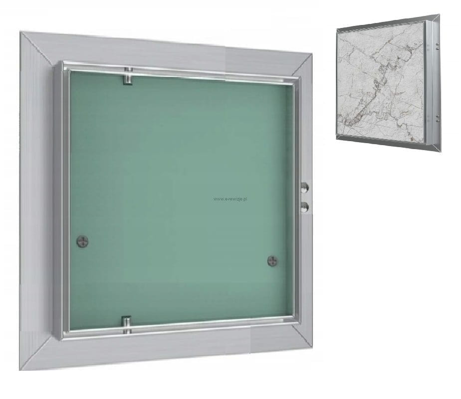 Drzwiczki rewizyjne CERAMIKO ukryją Twój otwór rewizyjny!Drzwiczki rewizyjne pod płytki CERAMIKO wykonane zostały z profili aluminiowych, spawanych do ramy zewnętrznej i wewnętrznej. Cała konstrukcja połączona jest za pomocą stałych zawiasów, co umożliwia otwarcie skrzydła drzwiowego na bok, w razie potrzeby. Model produkowany jest z zieloną, wodoodporną, impregnowaną płytą GK w kolorze zielonym. Płyta ma grubość 12,5 mm. Ponad płytą gips-karton znajduje się dodatkowy kołnierz o wysokości 10,5 mm tworzący wnękę, która umożliwia wklejenie płytki ceramicznej. Po przyklejeniu płytki, całość licuje się z pozostałymi płytkami na ścianie tworząc spójną i elegancką całość. Wygodne otwieranie i zamykanie gwarantuje zamki zatrzaskowe klik-klak (tip-on), które znajdują się na ramie zewnętrznej. Naciśnięcie skrzydła drzwiczek rewizyjnych w miejscu zamka spowoduje otwarcie drzwi, natomiast ponowny docisk umożliwi ich zamknięcie. Konstrukcja drzwiczek CERAMIKO została zaprojektowana z uwzględnieniem obciążenia jakiemu muszą sprostać drzwi w połączeniu z płytką, dlatego bez obaw można wklejać w nie ceramikę. |