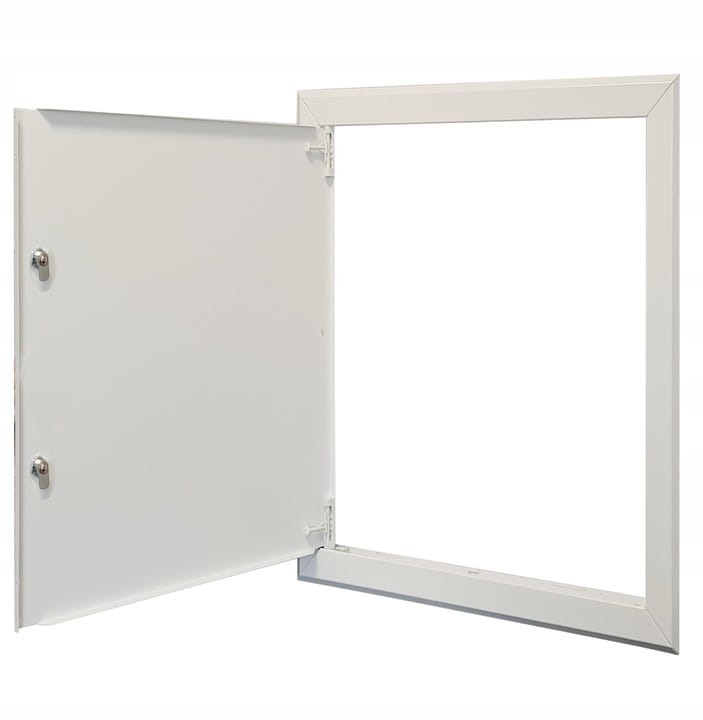 Drzwiczki rewizyjne na podwójnym zamku , zamykane na klucz – idealne do zakrywania otworów rewizyjnych w instalacjach budowlanych.