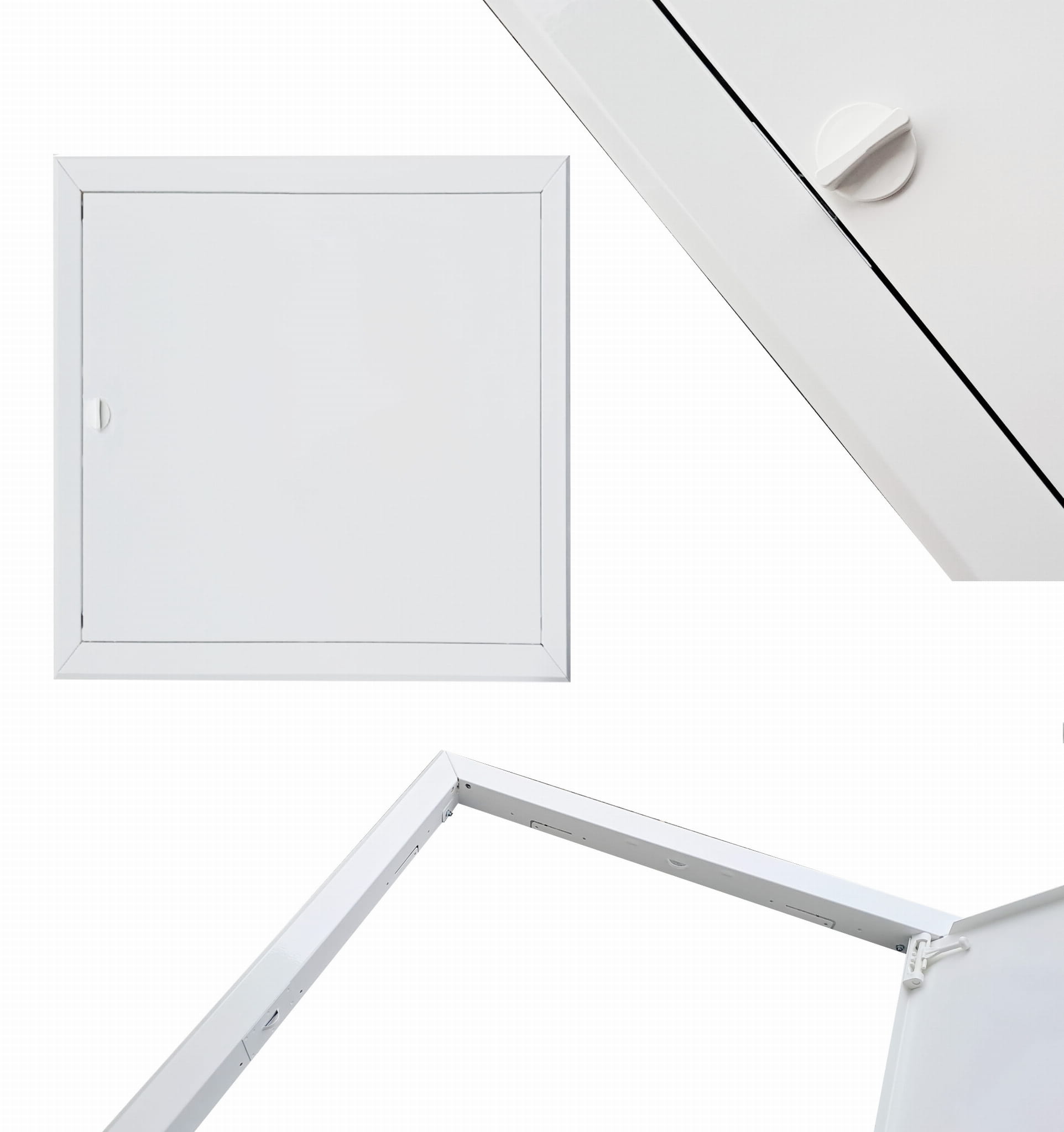 • Drzwiczki rewizyjne na podwójnym zamku , zamykane na zatrzask – idealne do zakrywania otworów rewizyjnych w instalacjach budowlanych.