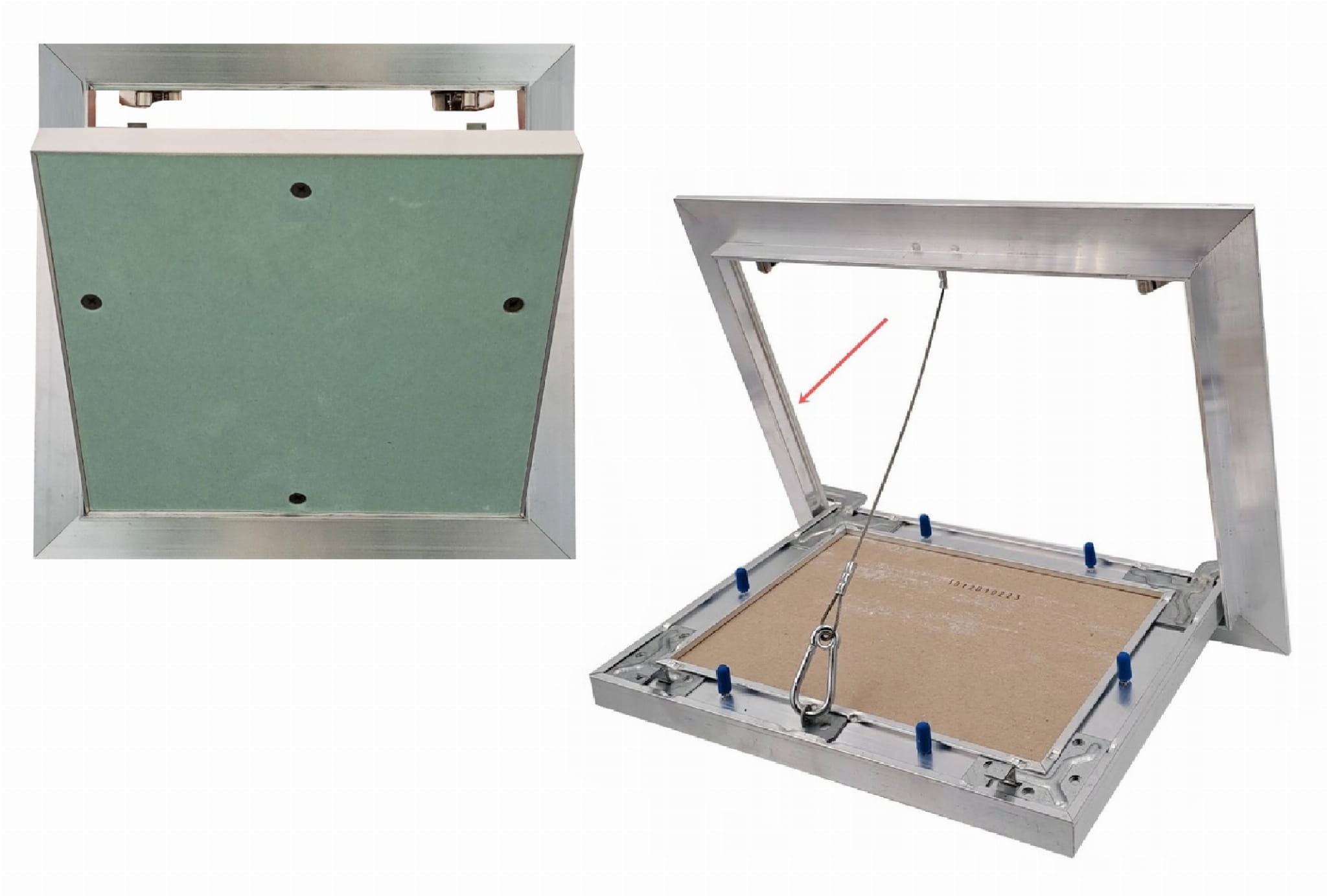 - Możliwość wyjęcia skrzydła drzwi z płytą z ramy drzwiczek – co umożliwia pełny dostęp do otworu rewizyjnego.