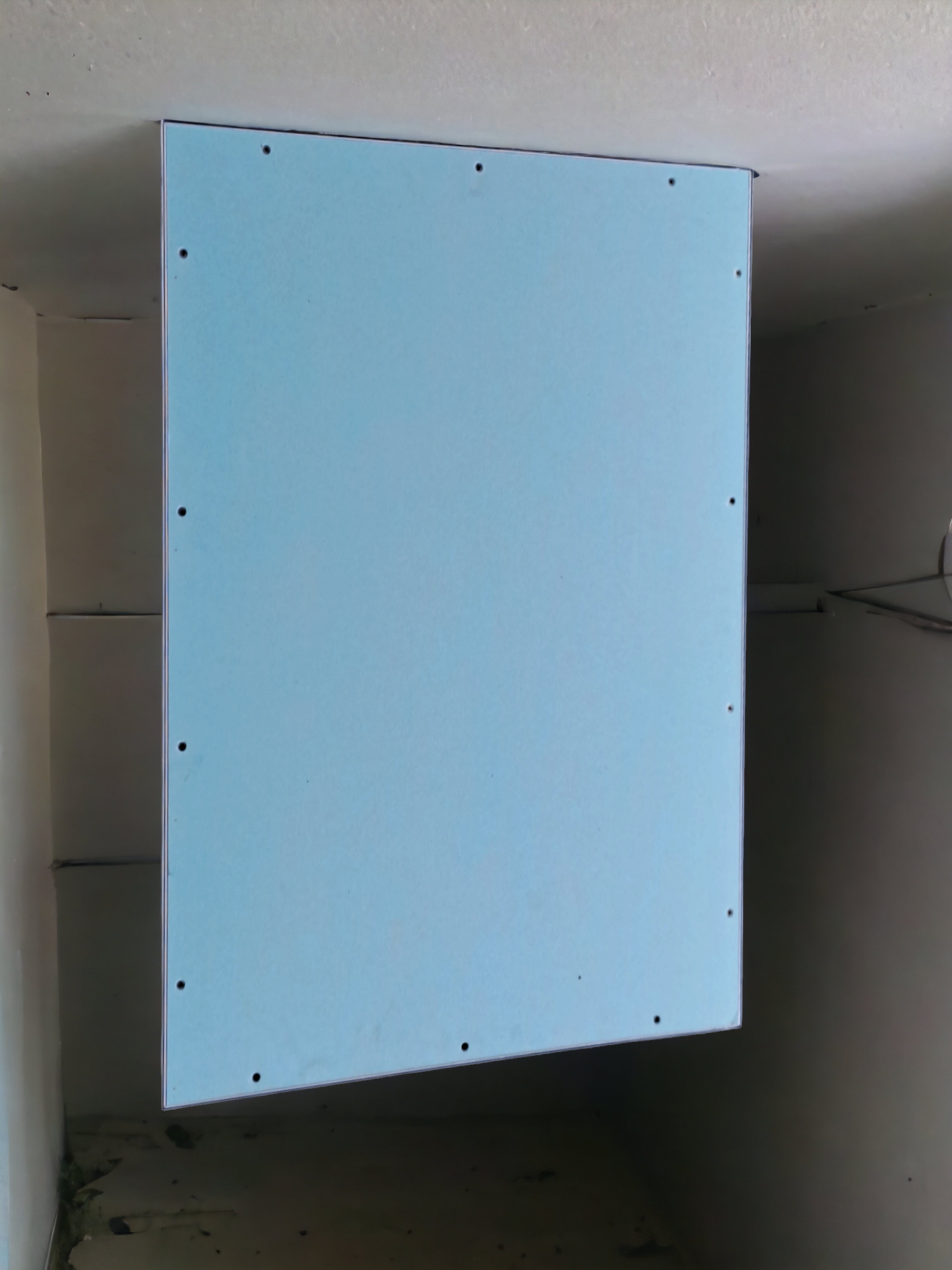 Model drzwiczek rewizyjnych RIVET jest produkowany z zieloną płytą gips-karton, pokrytą warstwą impregnatu. Dzięki impregnacji płyta jest bardziej wytrzymała i doskonale sprawdza się w pomieszczeniach o podwyższonej wilgotności takich jak: łazienka, czy toaleta. Wspomniana płyta mocowana jest do ramy wewnętrznej za pomocą wkrętów samogwintujących.