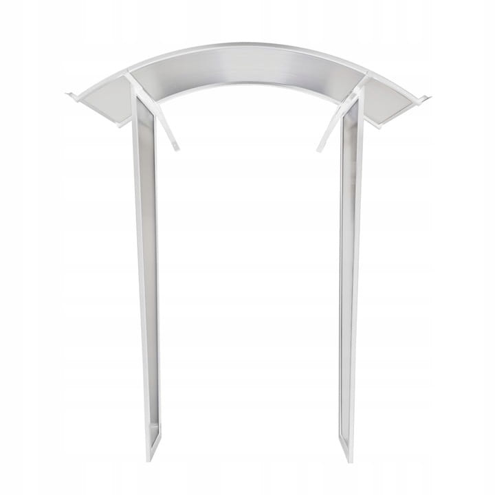- Zadaszenie w postaci daszku nad drzwi z dwoma ściankami bocznymi – konstrukcja wykonana z poliwęglanu 4-komorowego w kolorze bezbarwnym oraz aluminiowej ramy malowanej proszkowo na kolor biały. Poliwęglan o grubości 4 mm charakteryzuje się odpornością na uderzenia i promieniowanie UV, nie odbarwia się i nie kruszy. Aluminiowa rama sprawia, że konstrukcja jest mocna i stabilna.