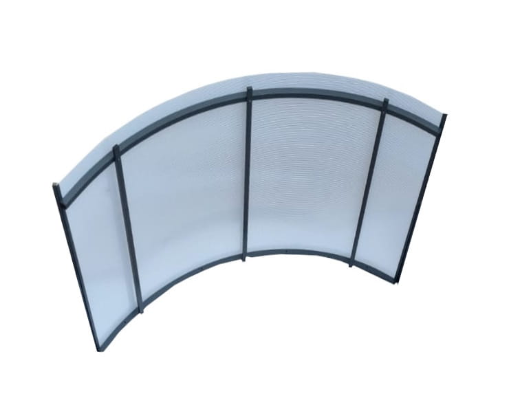 • Poliwęglan: poliwęglan komorowy w kolorze bezbarwnym o grubości 4mm – daszek i 8mm – ścianka.