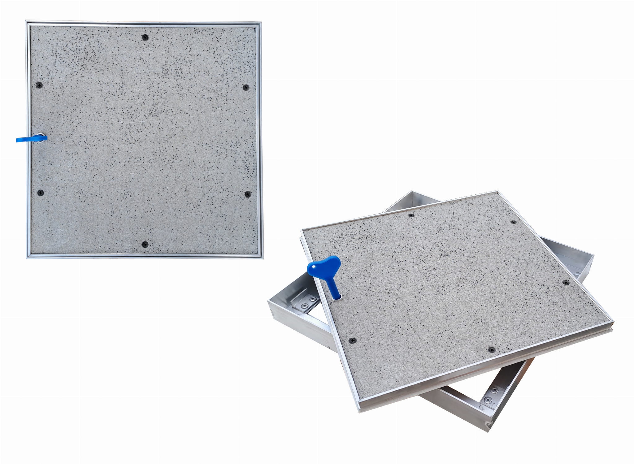 ELEVATION REMO LOCK – DRZWICZKI REWIZYJNE ALUMINIOWE WYJMOWANE Z WODOODPORNĄ PŁYTĄ CEMENTOWO-BETONOWĄ I USZCZELKĄ 300×300 mm
