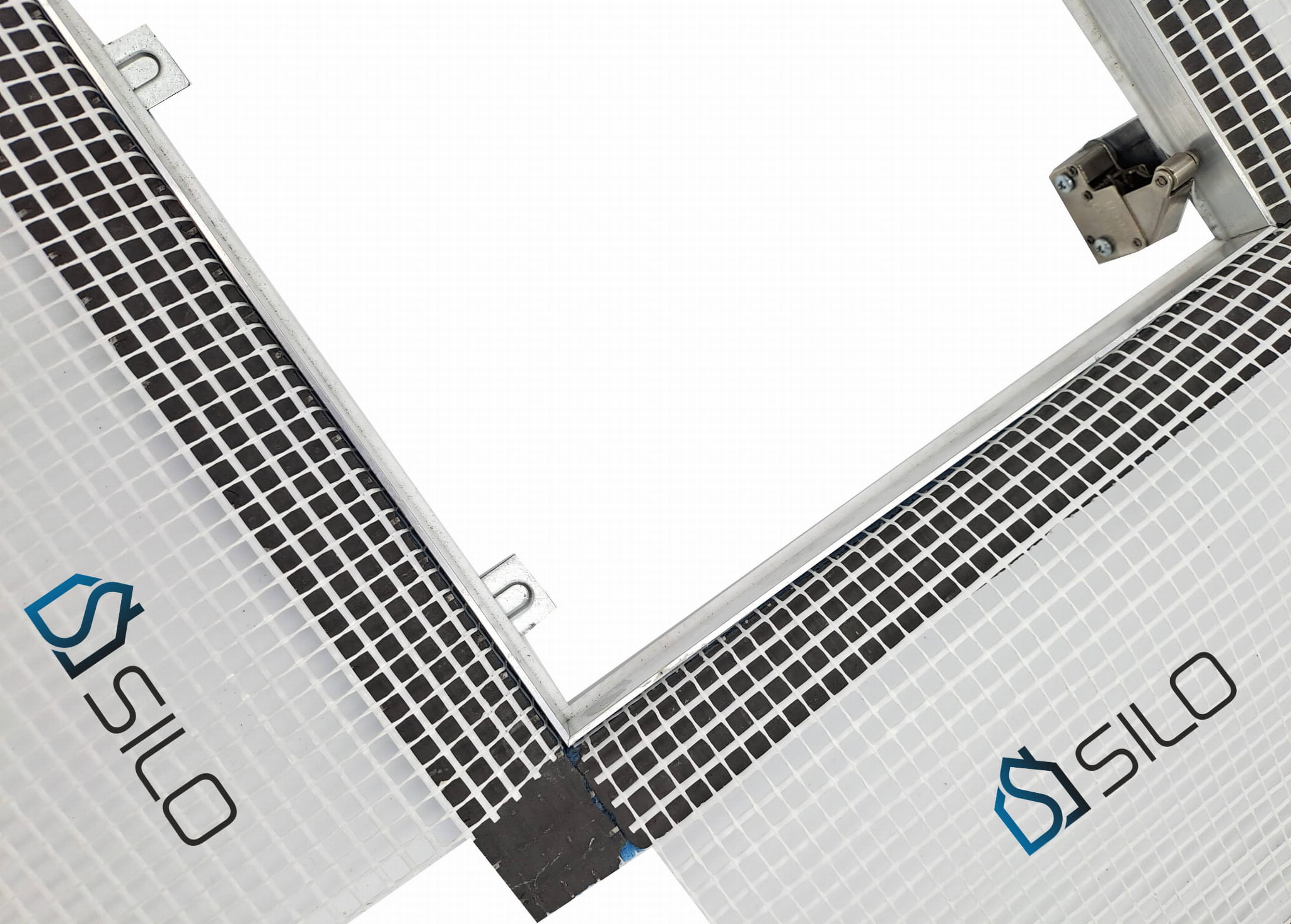 - Drzwiczki do mokrego montażu w elewacji z wyciąganą płytą i uszczelką wokół ramy wewnętrznej.