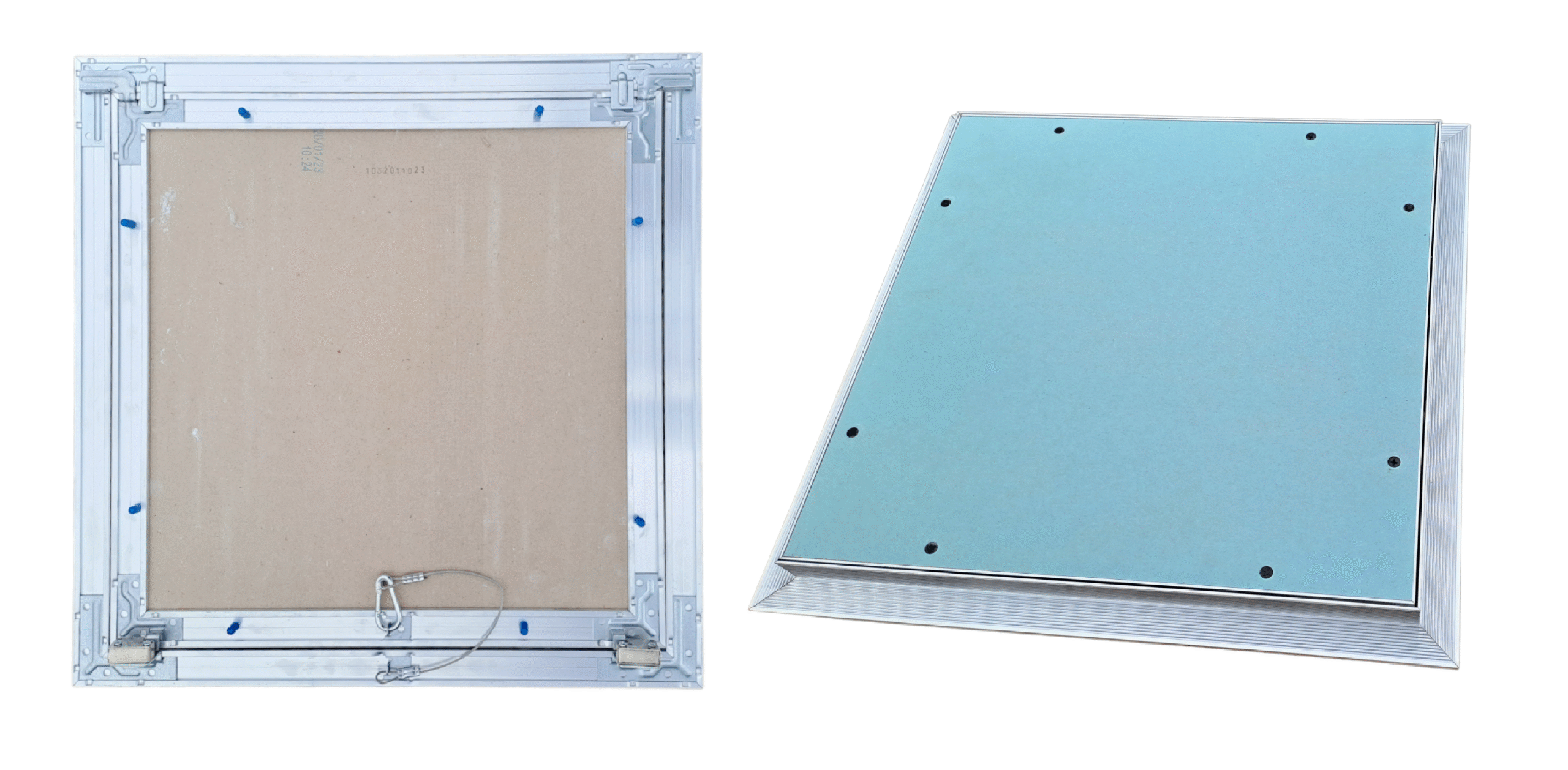 Model drzwiczek rewizyjnych REMO DOUBLE jest produkowany z zieloną, podwójną płytą gips-karton o łącznej grubości 25 mm, pokrytą warstwą impregnatu. Dzięki impregnacji płyta jest bardziej wytrzymała i doskonale sprawdza się w pomieszczeniach o podwyższonej wilgotności takich jak: łazienka, czy toaleta. Wspomniana płyta mocowana jest do ramy wewnętrznej za pomocą wkrętów samogwintujących.