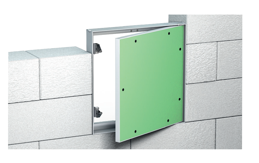 Rewizja wykonana ze spawanych profili aluminiowych tworzących wewnętrzną i zewnętrzną ramę. Cały zestaw jest podłączony za pomocą stałych zawiasów umożliwiających otwarcie drzwi w razie potrzeby. Model ten produkowany jest z impregnowaną płytą GK o grubości 12,5 mm w kolorze zielony, montowaną do ramy wewnętrznej za pomocą wkrętów.