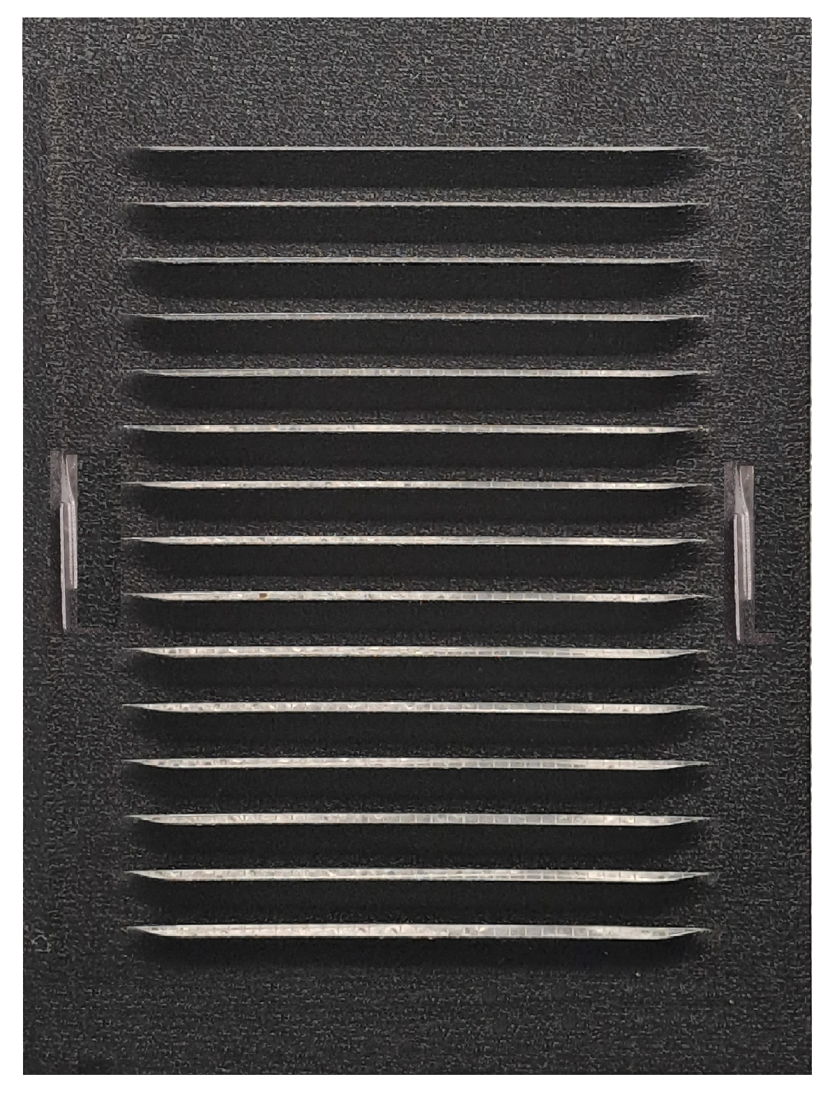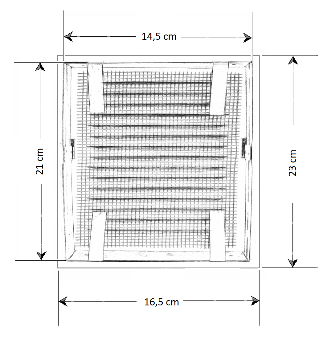 • Metalowa płaska kratka ze skośnymi żeberkami.